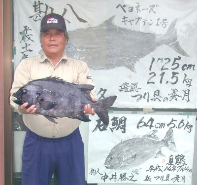 ![]() 前回の魚拓の前で 59cm 4.3Kg |