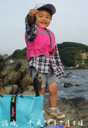 荒崎と見て回るが子タナゴ位しか釣れていないので、諸磯の黒鯛込に向かう、車を置き磯ずたいに孫