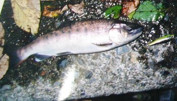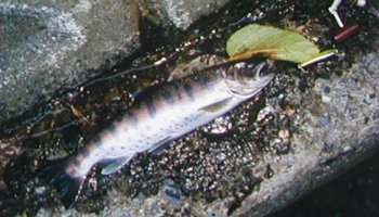 が入ってます。そのせいか、ヤマメはいません。ニジマスが(しかも小型ばかり)釣れる程度