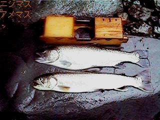 マス(22‐25cm)が5尾、坪井氏は、良計の、アメマスとニジマスを含め5尾とまぁまぁでした。